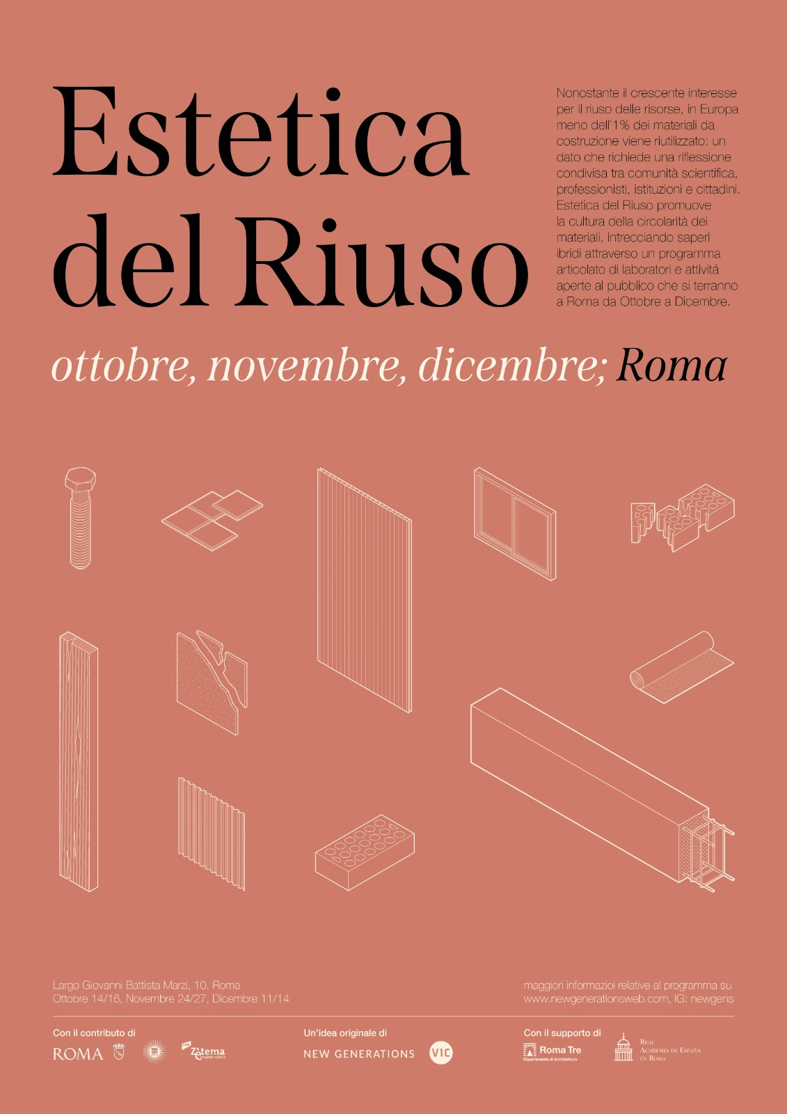 Nei giorni 14 - 15 - 16 ottobre, all'interno delle attività previste dal progetto promosso da Roma Capitale – Assessorato alla Cultura Estetica del Riuso. Un progetto sul riutilizzo dei materiali di recupero nel settore delle costruzioni, in dialogo con il campo delle arti applicate si svolgerà il