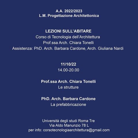 Primo appuntamento di lezioni tematiche sull’abitare a cura del corso di Tecnologia dell’Architettura (prof.ssa Chiara Tonelli)