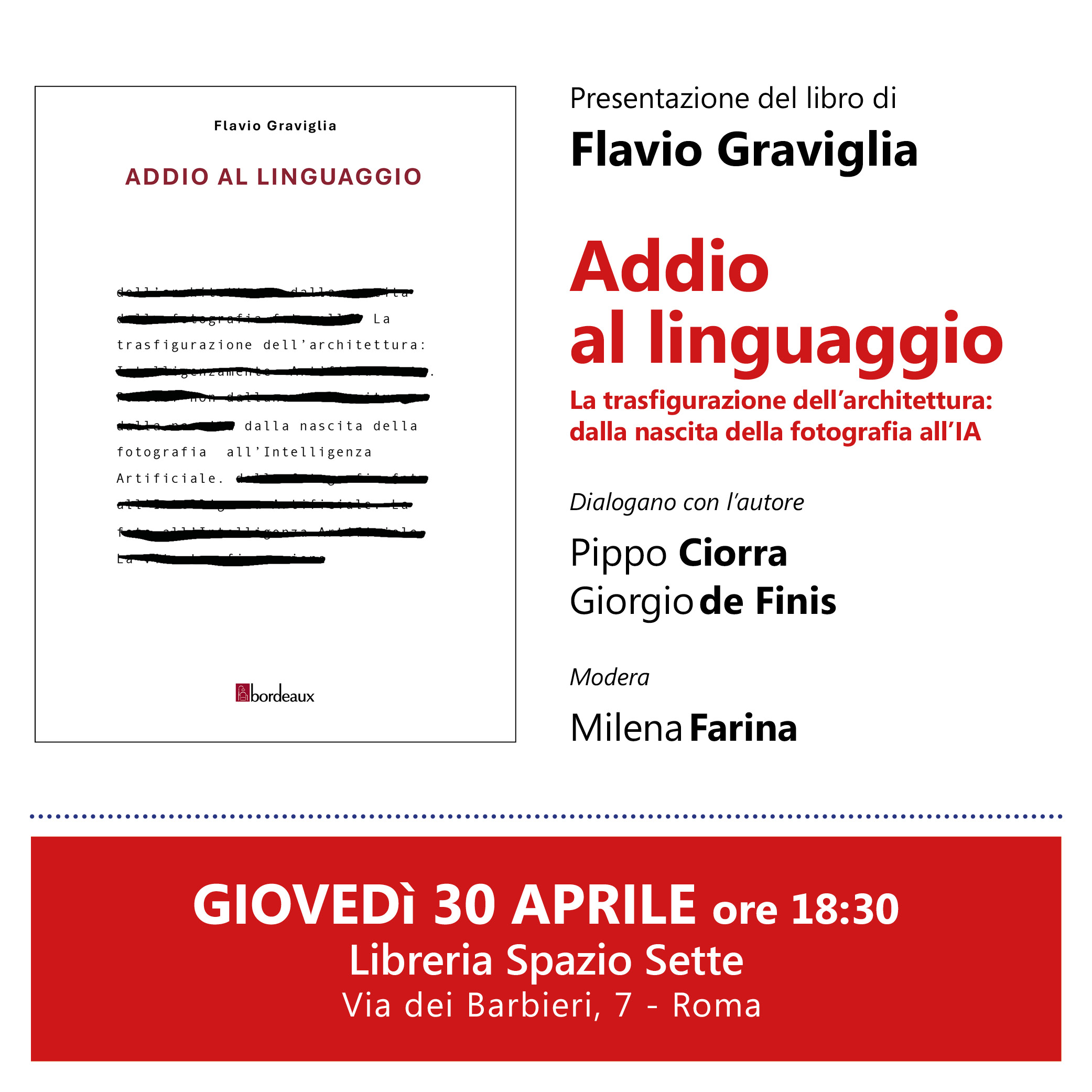 Giovedì 30 aprile, presso Spazio Sette, si terrà la presentazione del libro di Flavio Graviglia