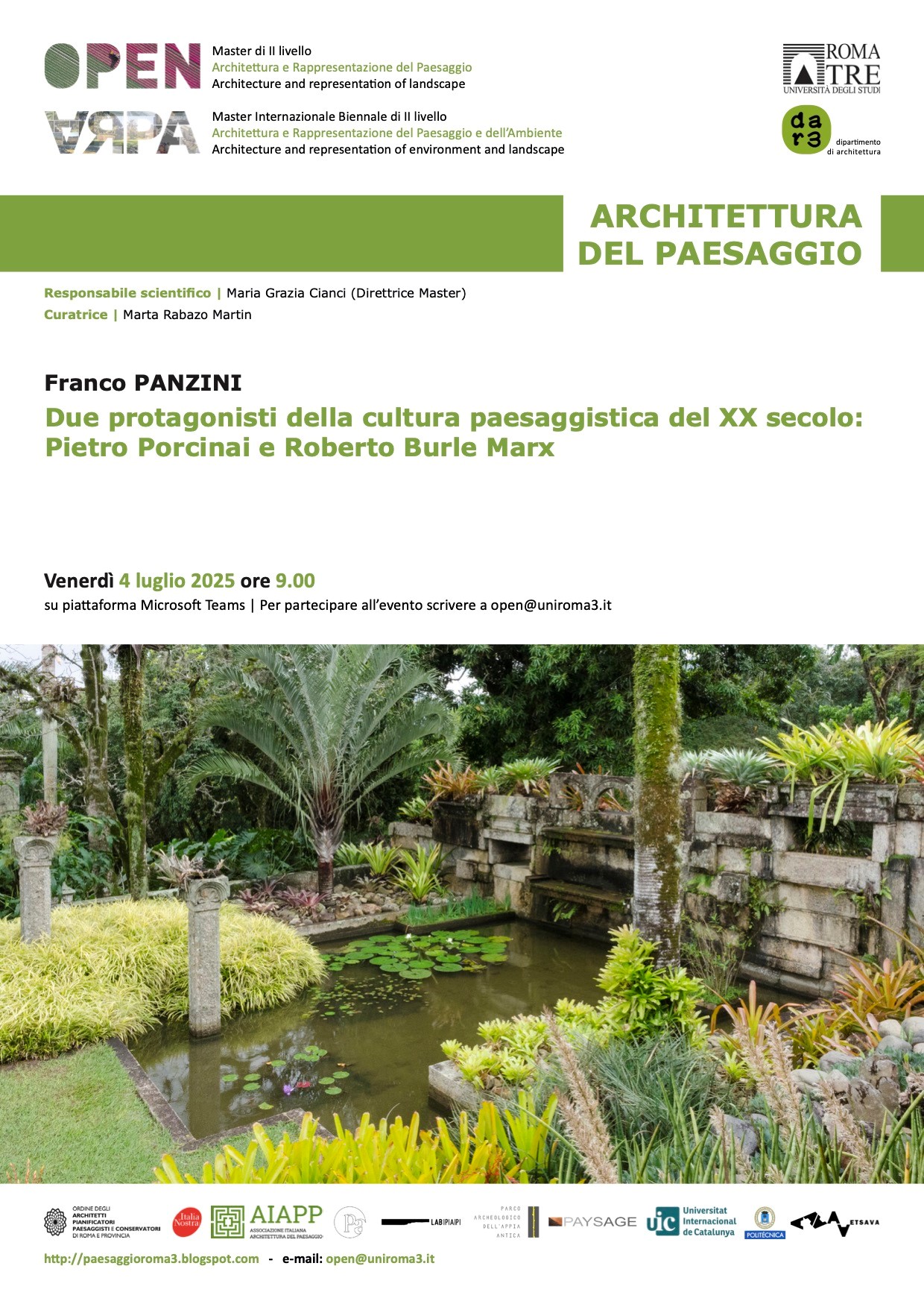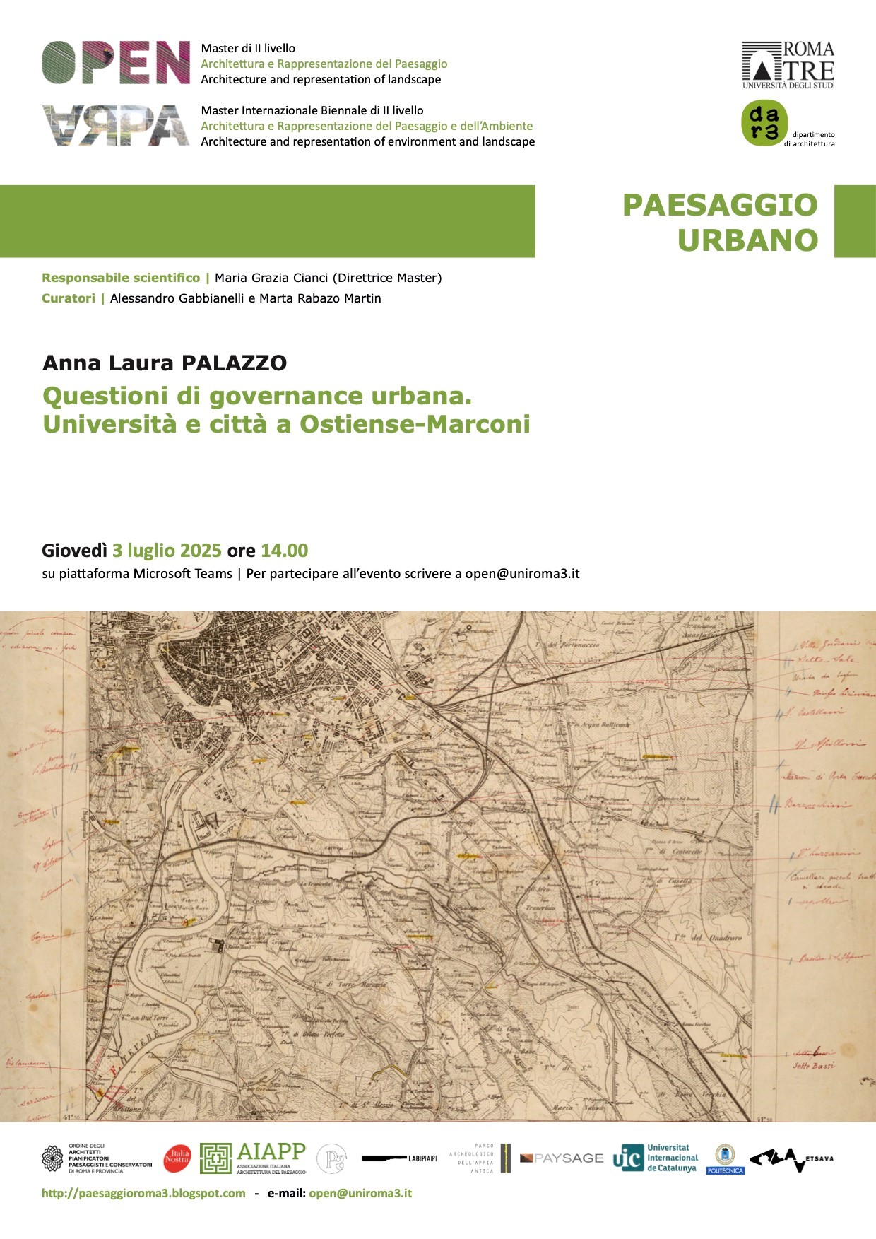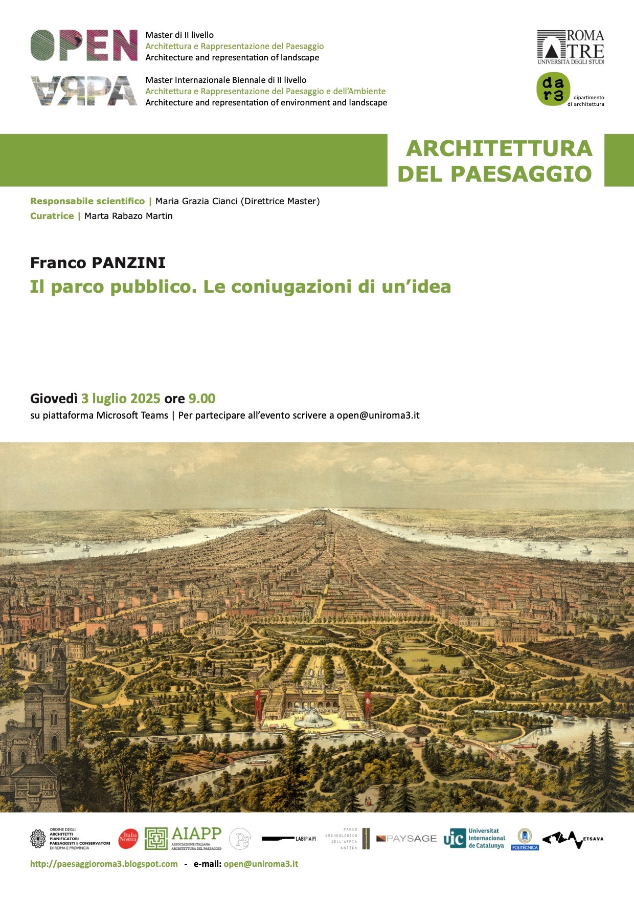 Gli OPEN DAYS si svolgono in collaborazione con il Dottorato in “Paesaggi della Città Contemporanea. Politiche, tecniche e studi visuali” e con il patrocinio dell’Università Roma Tre e di Italia Nostra. L’edizione 2021-2022 propone nove incontri online, svolti da maggio a dicembre, secondo le tematiche ed il calendario di seguito riportato.
