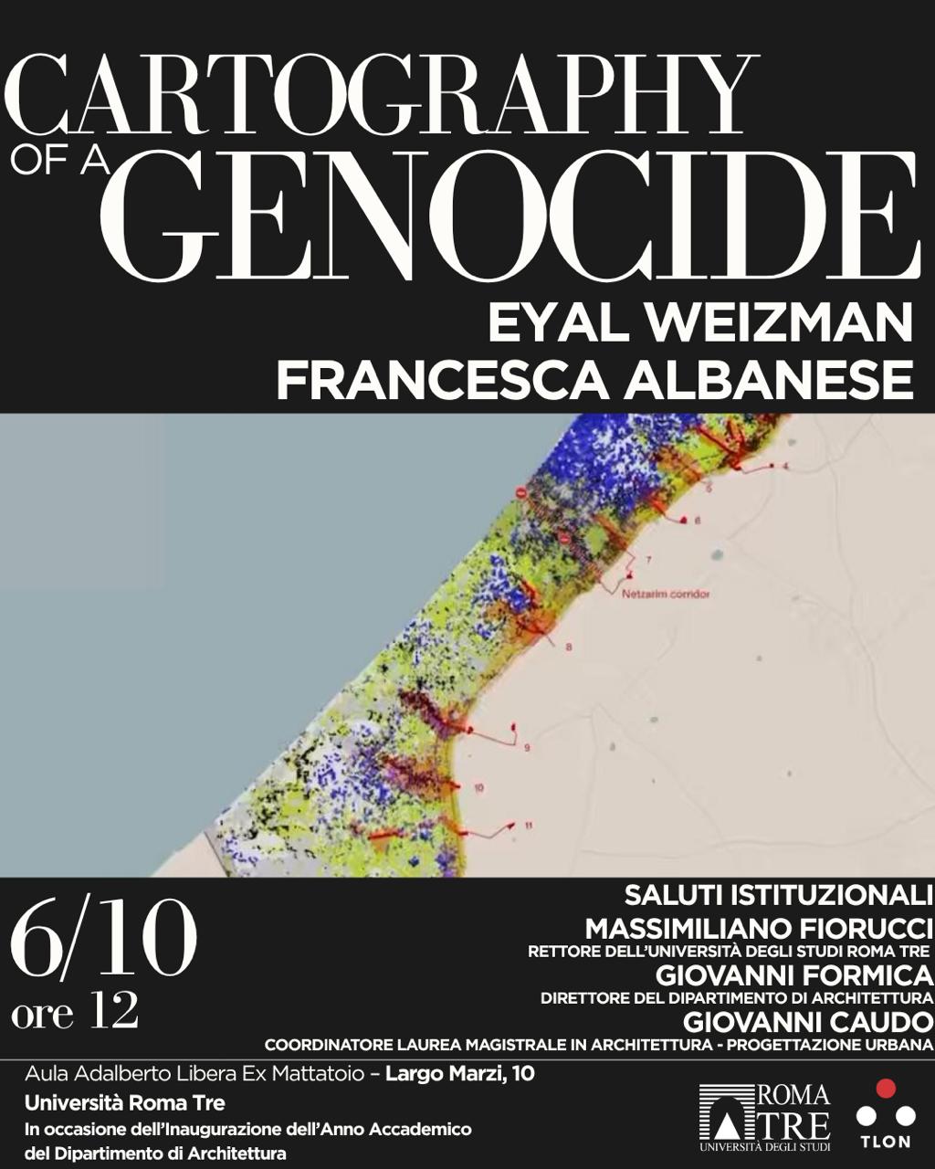 In occasione dell'inaugurazione dell'anno accademico del Dipartimento di Architettura, lunedì 6 ottobre si terrà la conferenza di Eyal Weizman e Francesca Albanese