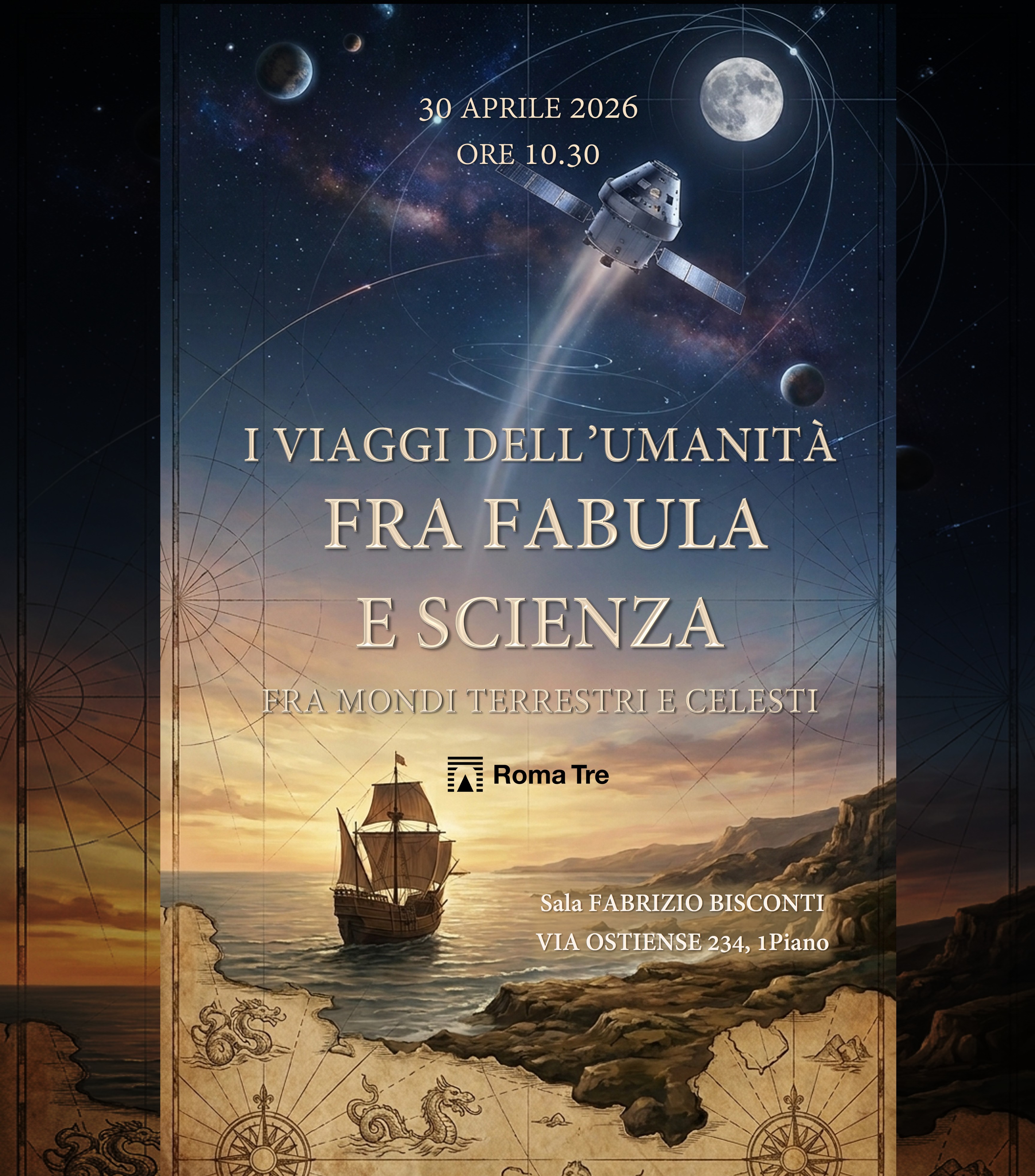 Giovedì 30 aprile 2026, alle ore 10.30, presso la Sala “Fabrizio Bisconti” del Dipartimento di Studi Umanistici (Via Ostiense 234-236), si terrà il seminario “I viaggi dell’umanità fra fabula e scienza, fra mondi terrestri e celesti”. L’iniziativa propone una riflessione multidisciplinare sulle trasformazioni degli orizzonti umani, dalle esplorazioni antiche alle più recenti missioni spaziali.