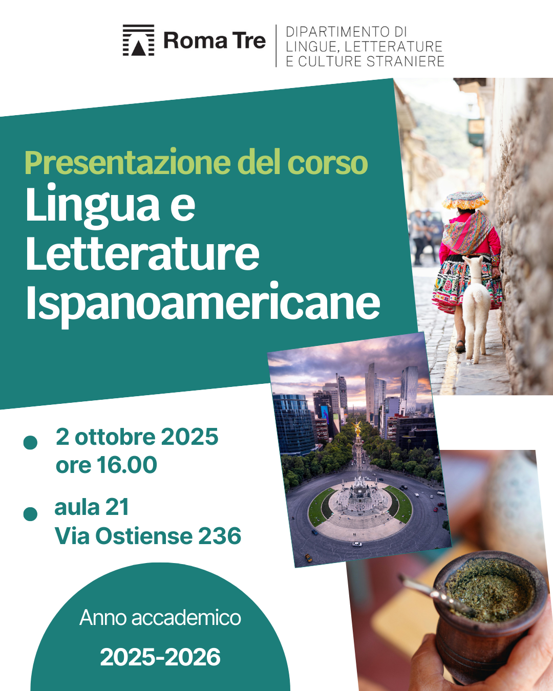 Presentazione del corso: Lingua e Letterature Ispanoamericane 2 ottobre 2025ore 16:00Aula 21 - Via Ostiense 236Link identifier #identifier__52790-1LocandinaLink identifier #identifier__193602-1Link identifier #identifier__171527-2Link identifier #identifier__174430-3Link identifier #identifier__109112-4 Skip back to navigation