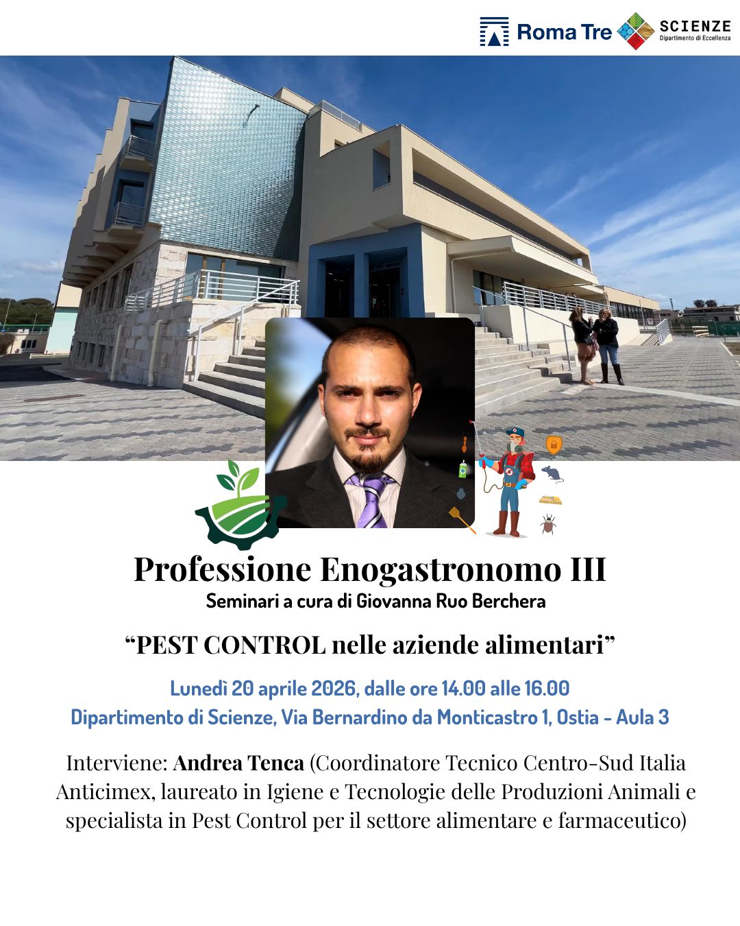 Il seminario intende approfondire il tema del pest control in ambito alimentare, con particolare attenzione alle evoluzioni più recenti del settore, agli aspetti normativi e alle strategie di gestione sostenibile degli infestanti.